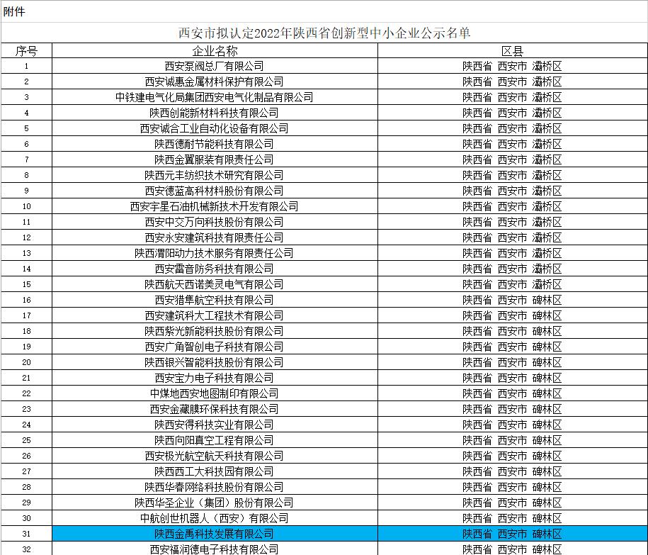 近日,陜西省工業(yè)和信息化局公示了2022年度創(chuàng)新型中小企業(yè)名單。經(jīng)企業(yè)自主申報、各區(qū)縣、各開發(fā)區(qū)初審?fù)扑]、復(fù)核抽查等程序,陜西金禹科技發(fā)展有限公司被認(rèn)定為陜西省2022年度創(chuàng)新型中小企業(yè)。